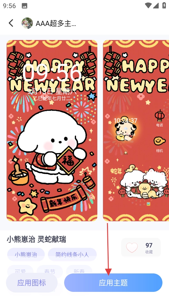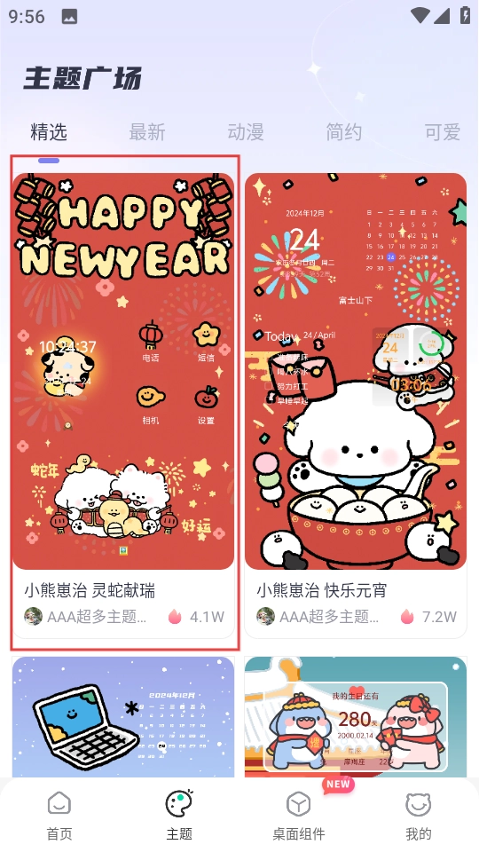 在主题广场页面,挑选心仪的主题,像“灵蛇献瑞”这类,点击即可进入。