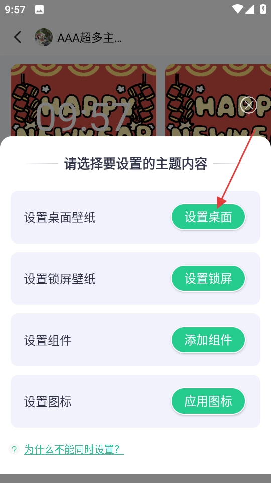 当设置选项弹窗出现后,选择“设置桌面”这一选项,即可把该主题应用到桌面。