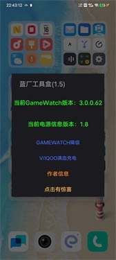这是一款多功能的系统工具软件,集成了超多实用功能与各类工具。你可以借助蓝厂工具盒1.8版本,实现Gamewatch系统版本的降级,也能用来调整电源信息,为手机解锁满血充电模式。软件操作十分简便,点击即可启用各项功能。新版本的蓝厂工具盒1.8将所有功能免费开放给用户,感兴趣的话就来安装体验吧!