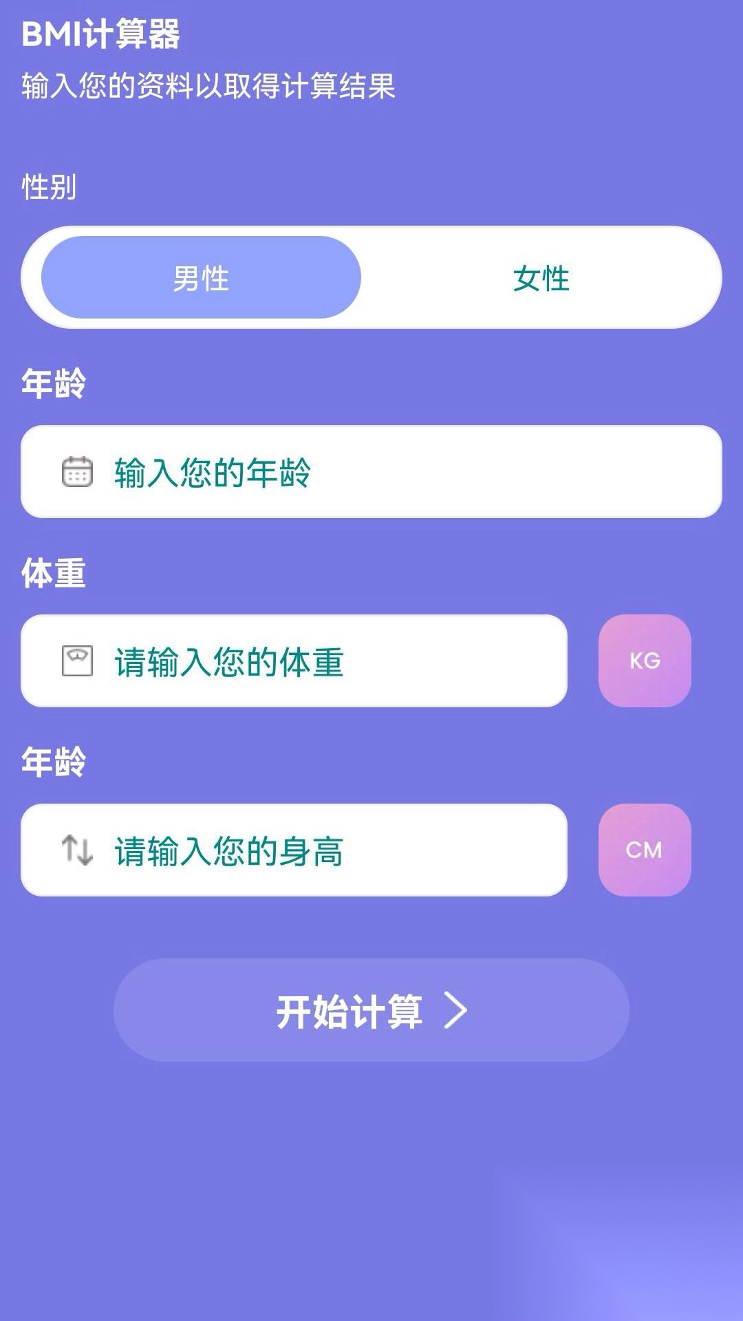 只需输入性别、年龄、体重和身高,就能一键快速算出BMI值,系统还会根据结果给出个性化的改善建议,助力你更好地了解自身的身体状况。