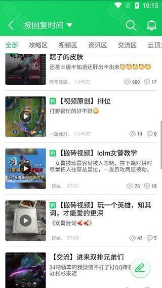 在社区板块里,能看到很多分区,像lol、原创技术、王者荣耀之类的。
