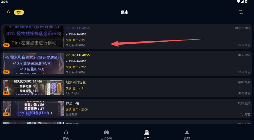 1、暗黑核集市的交易操作,需在物品详情查看页面完成,登录后找到你想要进行交易的物品分类即可。
