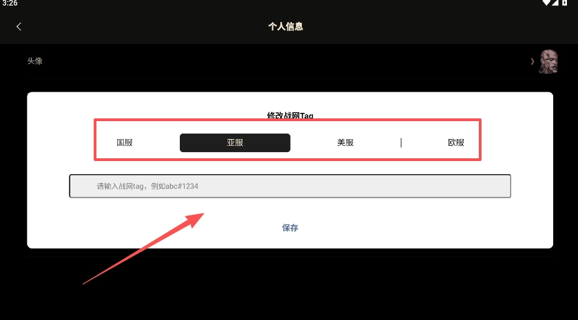 5、可从国服、亚服、美服或欧服里挑选其一,完成战网tags的绑定操作后点击“保存”按钮。