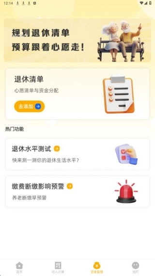 退休清单规划功能十分实用,能提前为你规划好退休后的生活,涵盖养老金的领取情况等内容,让你对未来拥有清晰的规划。