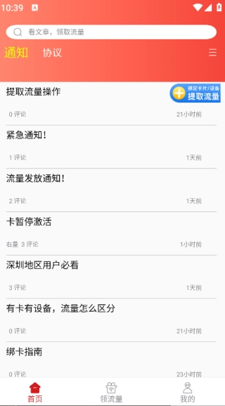 在首页即可看到实时通知和协议;