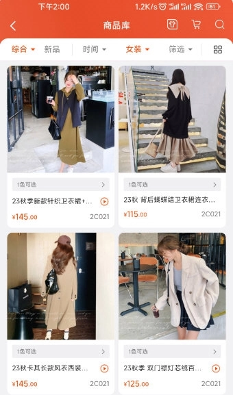 1、为分销商搭建涵盖一件代发、商标注册、新品速递、市场考察、商品库等多元功能的批发采购场景,业务范围覆盖男装、女装、鞋包及配饰品类。