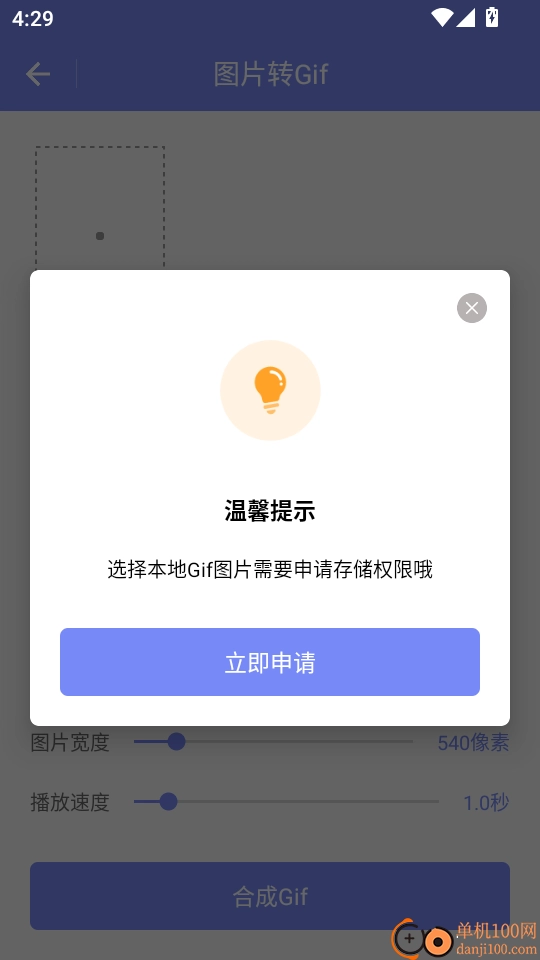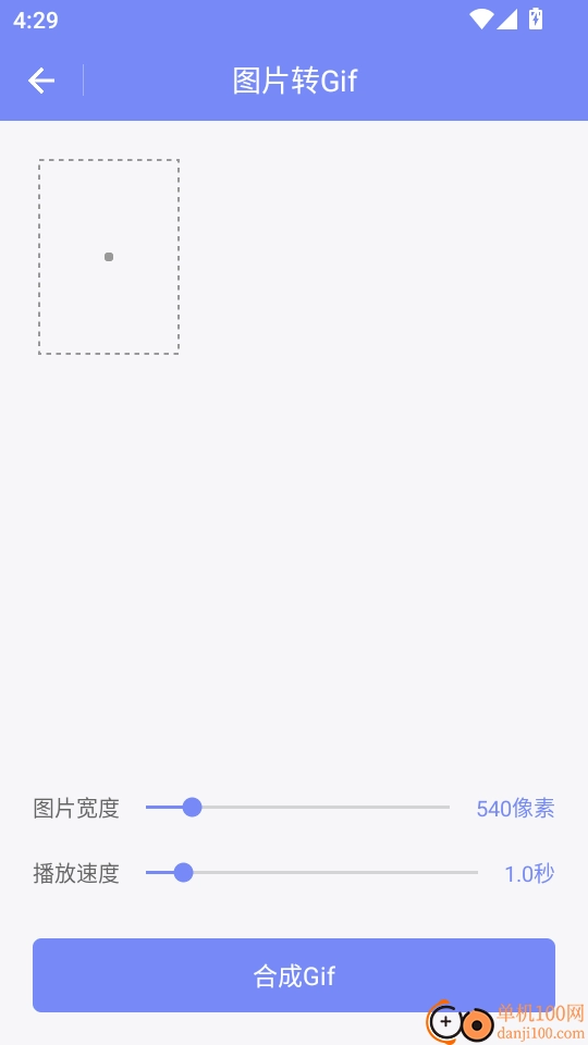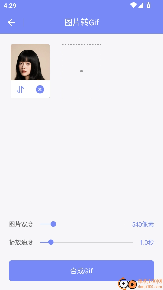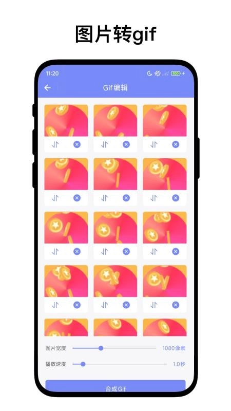 5.从相册添加完图片后,调整“图片宽度”和“播放速度”,接着点击“合成Gif”按钮进入下一步操作