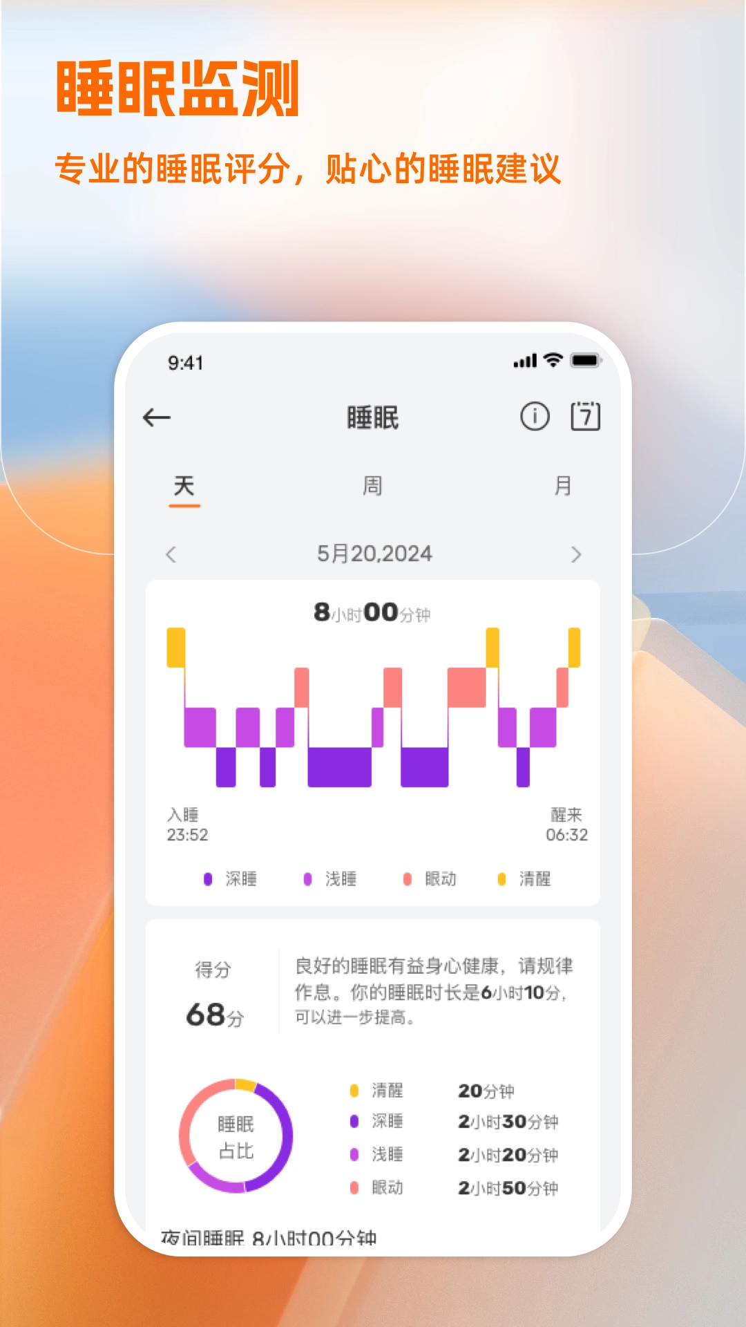 睡眠监测,专业的睡眠评分,贴心的睡眠建议