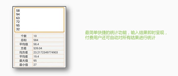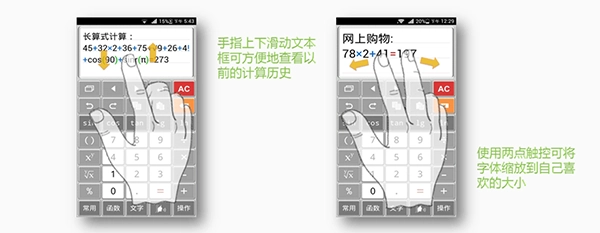 在算式里添加备注文字,点击等号就能开展混合计算。添加文字与混合计算的功能,方便用户对重要的计算记录进行备注。