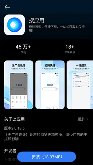 1、因为该安装包的格式为apk,所以也能在安卓手机上运行使用,操作方式和安装普通安卓应用相同,安装完成后就能打开进行应用搜索与安装;比如,用户搜索到目标应用后,进入应用详情界面,点击【安装】按钮即可。
