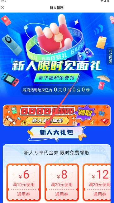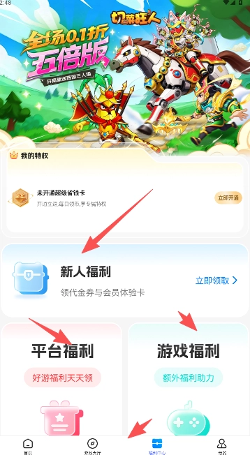 1、在凌天众游网的平台福利中心版块,用户可以分别领取新人福利、平台福利以及游戏福利。