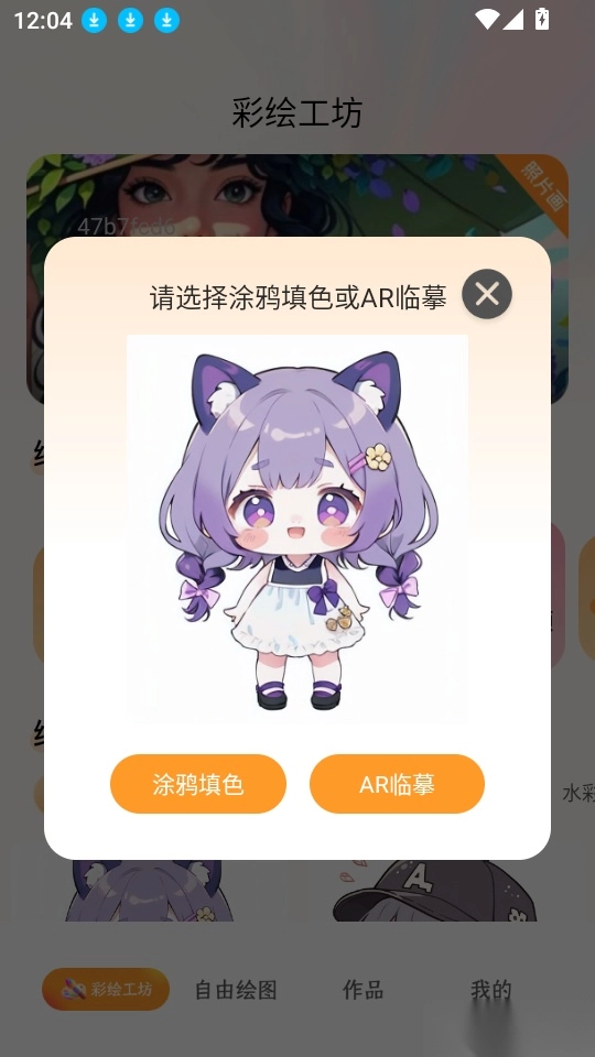 4、接下来会弹出提示窗口,点击“涂鸦填色”按钮即可进入下一步操作。