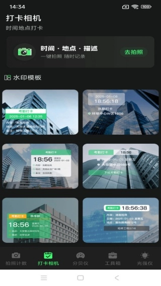 3、配备打卡相机功能,随时拍照就能获取最新数据。