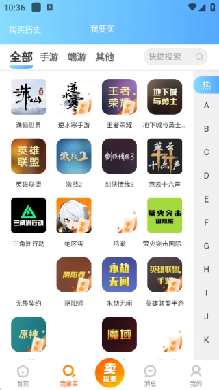 2、在“我要买”页面,你可以查看所有游戏账号,也能对游戏账号进行搜索。
