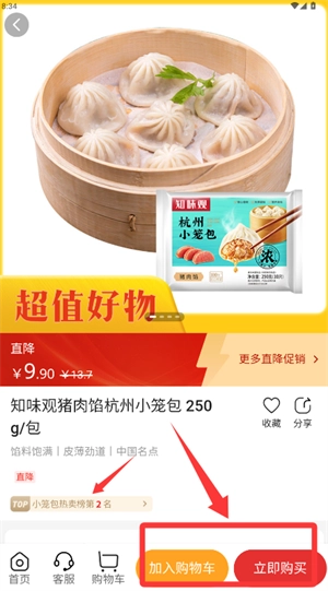 4、挑选好具体商品后,点击加入购物车按钮,或是直接点击购买按钮,即可完成相应操作。