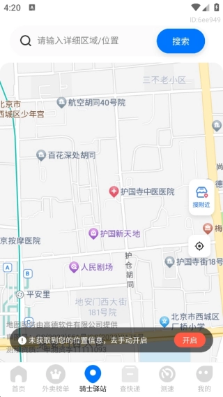 2、前往最近的骑士驿站,直接输入详细地址即可。系统自带导航功能,会直接指引骑手前往目的地。