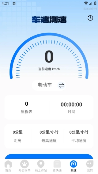 4、骑手若觉得行驶速度不好把控,可以在软件里点一下,测试自己电动车的行驶速度。