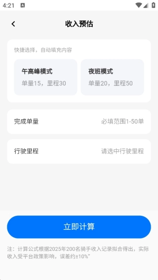 5、当然最重要的是要清楚自己跑一天单子的收入情况,按照软件提示输入相应数据,就能算出今天的收入啦!