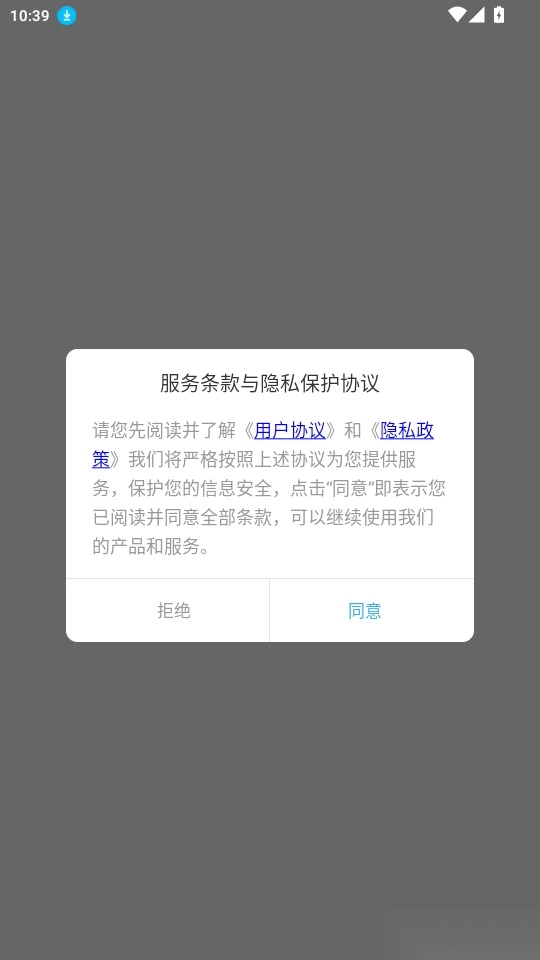 1. 启动软件后,阅读《服务条款与隐私保护协议》,点击“同意”按钮进入下一步。