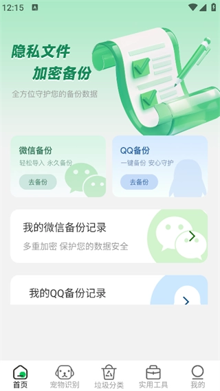 2. 在首页就能看到微信备份、QQ备份、备份记录等功能;