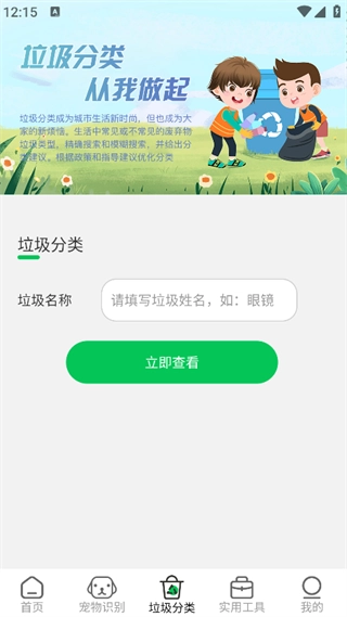 4. 点击页面下方的“垃圾分类”选项,就能依据垃圾的具体名称,查询到对应的分类信息。