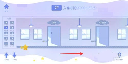3、点击不同楼层能够选择不同的睡眠时间段,最早可在20:00入睡。向右滑动可以选择该时间段内不同的寝室。