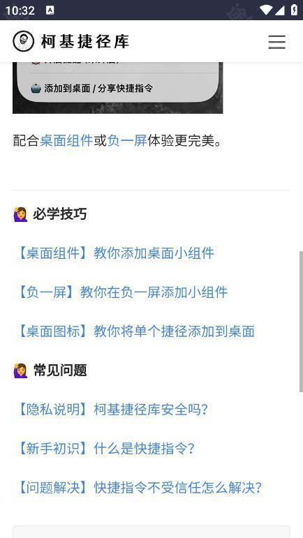 柯基捷径库手机版是一款功能极为强大的实用工具。该软件为用户增添了大量丰富实用的工具,助力用户更高效地开展社交活动与工作。软件内不仅涵盖众多网站和资源链接,还有各类便捷实用的工具以及各种快捷指令操作,能帮助用户提升手机使用效率,同时修复手机中各类已知的 bug。此外,软件界面简洁直观,用户可依据个人需求自定义快捷指令,为众多用户带来极佳的使用体验,使用起来也十分便捷。感兴趣的用户不妨来本站下载体验!