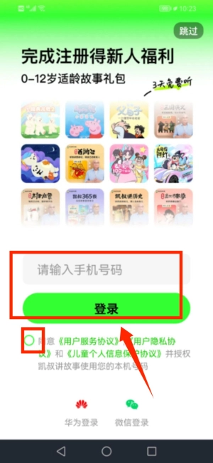 2、输入手机号并勾选协议,完成登录操作。