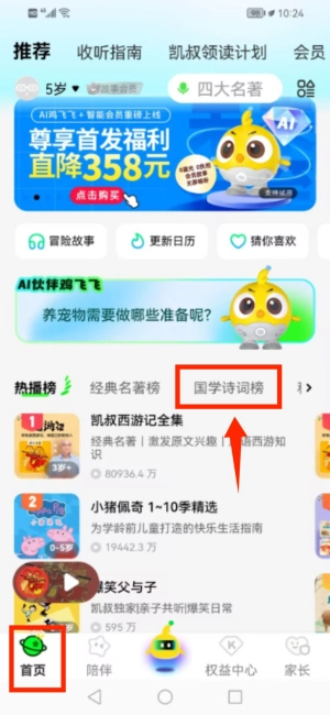 3、首页选择国学诗词榜进入相关内容页面。