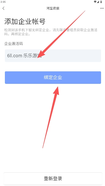 2、输入企业激活码绑定企业。