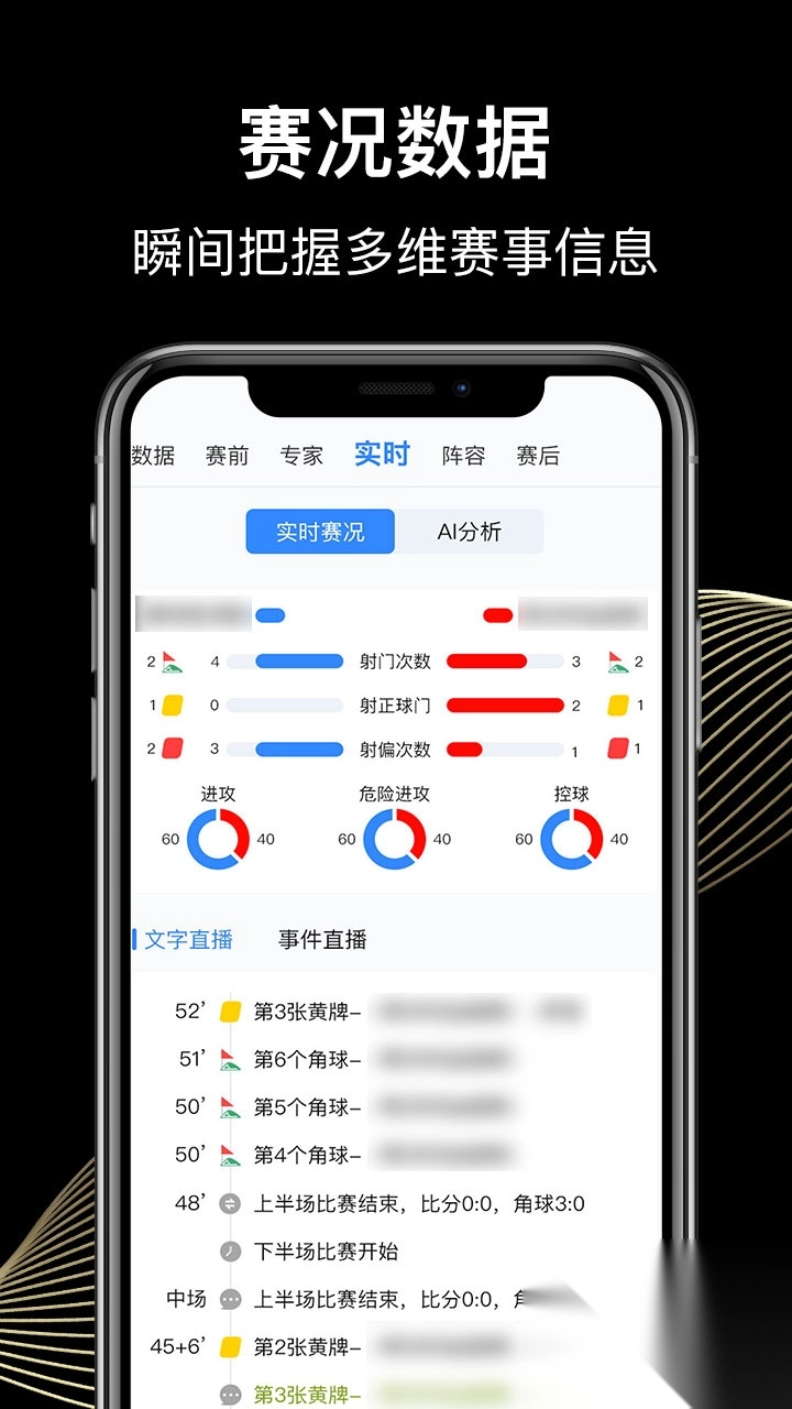 可以轻松掌握比赛的实时动态,像双方的射门回数、射正回数、进攻数据以及控球率等信息都能便捷获取。
