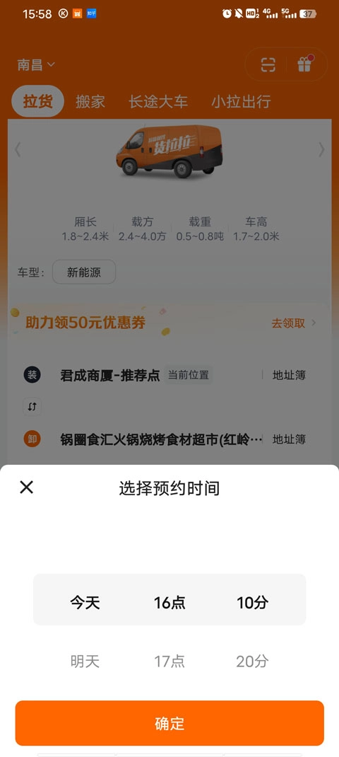 可根据货量灵活选择车型,平台提供从小面包车到9米6大货车等多种车型(具体车型以城市实际开通情况为准)