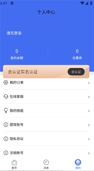 4. 点击页面底部的“我的”选项,就能看到我的订单、在线客服、我的技能等相关功能。