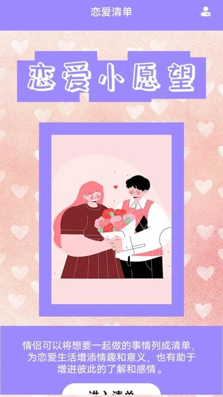 3. 接着在“恋爱清单”的功能菜单页面,找到位于底部的“进入清单”按钮,点击该按钮进入