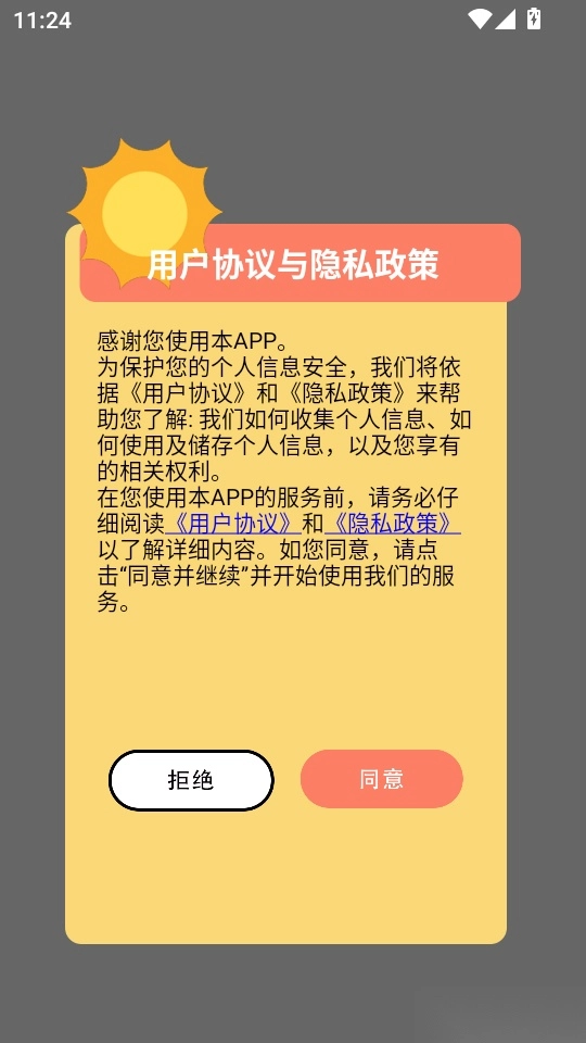 1. 首先打开软件,阅读协议与隐私政策后,点击“同意”按钮进入下一步