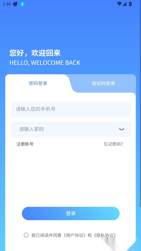 2.输入手机号、密码点击“登录”即可立即登录使用