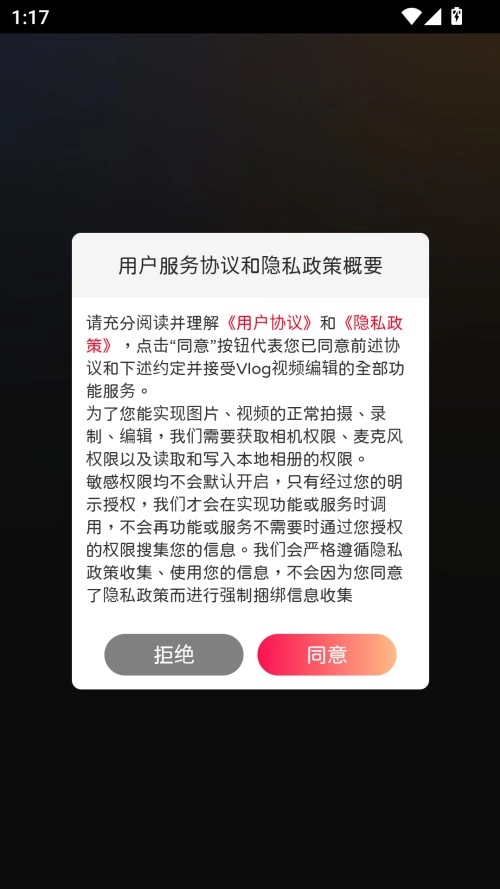 首次打开应用时,系统会弹出隐私政策与服务协议的提示窗口,用户需要仔细阅读相关内容后点击“同意”按钮,这样才能解锁并使用应用的所有功能。