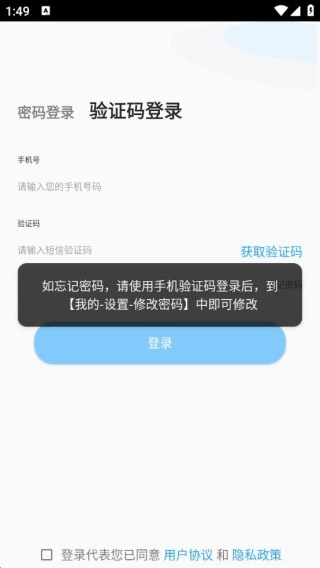 3、也能选择通过手机号验证码登录,方便随时操作。