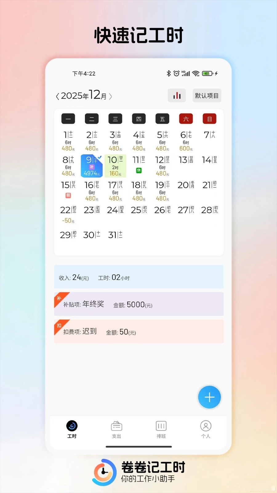 我们在处理某些工作事务时,常常需要对个人考勤情况进行记录,这时不妨试试“卷卷记工时”这款应用。在该应用里,你能够把自己的考勤数据录入其中,系统便会自动生成统计报表,直观呈现你本周或本月的工作时长与出勤状况;要是工作排班有所调整,也能提前在软件中做好记录,它会及时推送换班提醒,帮你避免因疏忽而记错班次的情况。