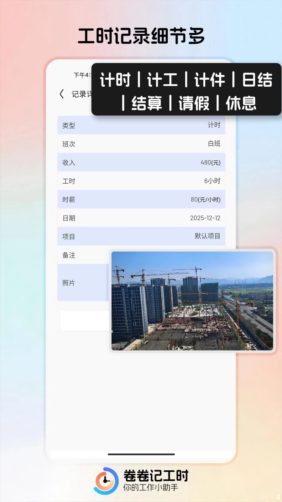 4、支持多种记账模式:计工、日结、计件、计时、包工等丰富灵便