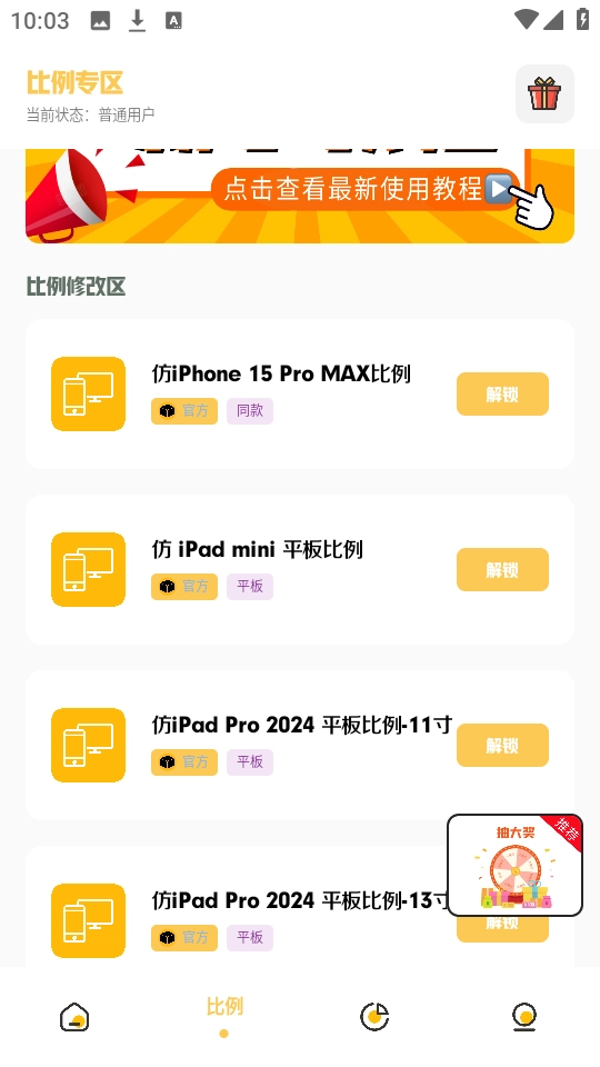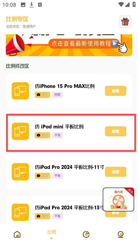 4、选定主题(如仿iPad mini平板比例),点击“解锁”按钮。