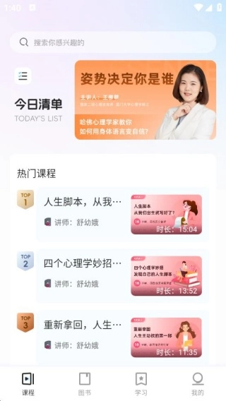 3、必读榜单、热门课程等板块将持续更新,为用户输送新鲜的心灵成长内容,以此维持软件的吸引力。