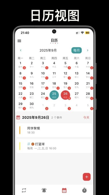 用日历形式向用户展示事项信息,能让你更简单直观地了解每天的事项安排。