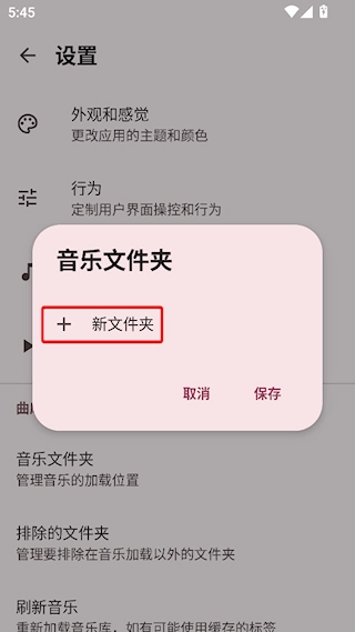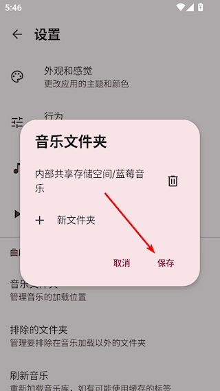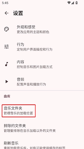 2、找到音乐文件夹选项,点击进行设置