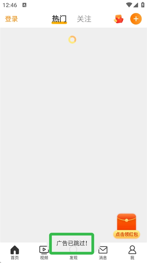 7、打开应用时,显示【广告已跳过】提示。