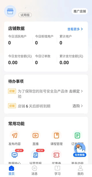 《小鹅通商家版手机版》一站式商家管理工具,帮助商家用户们搭建更加完善的知识学习共享平台,让大家随时在手机上就能够查看管理商品、店铺经营数据、订单以及用户数据部分,无论是用于日常经营还是实际的学员服务中们,都是有力的支持和重要保障。