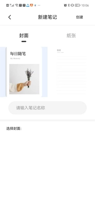 2、点击“+”号进入新建笔记页面,选择封面、输入笔记名称后,按照提示完成后续操作。
