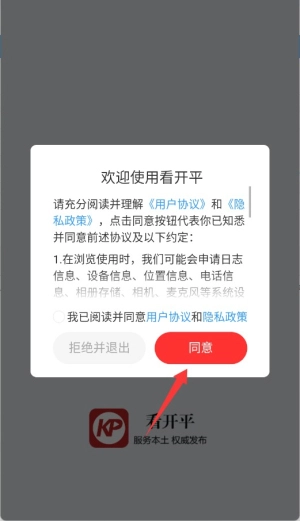 1、首次打开应用时,需要阅读并同意用户服务协议与隐私条款,点击确认按钮后即可进入主界面。