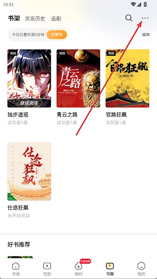 1、点击底部导航栏里的书架