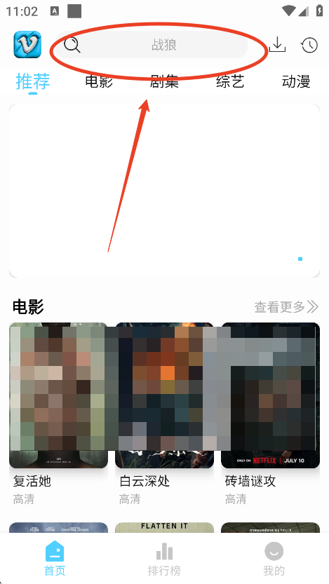 进入软件,点击首页上方搜索框